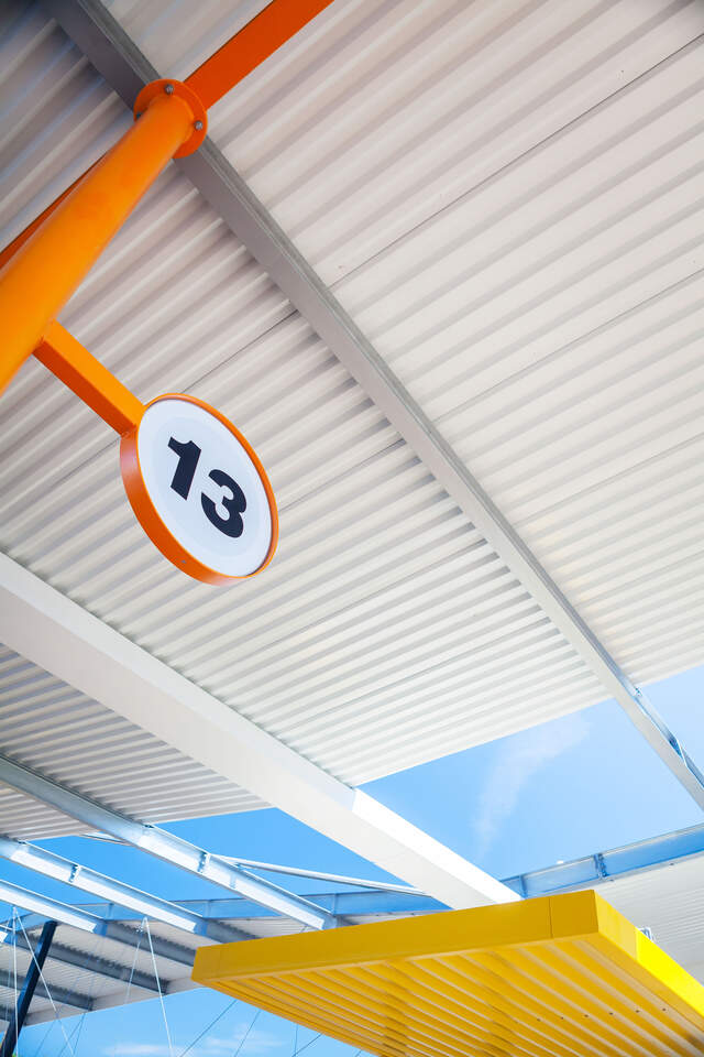 Součástí celkové rekonstrukce stanice bylo i vybudování zastřešení ostrovních nástupišť. Zajímavostí je využití názvu stanice jako jednoho z výrazných grafických prvků celé konstrukce. Na čistou plochu podhledů navazují skleněné paravány.