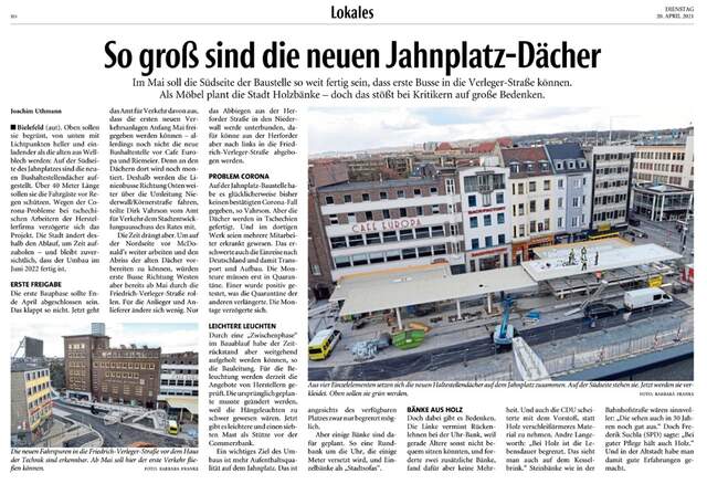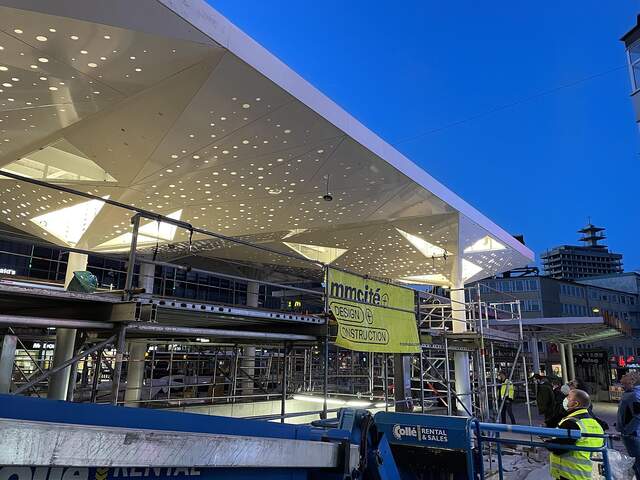 Celkem 1 300 čtverečních metrů zastřešení, to vše rozděleno do dvou etap. Tak vypadá naše práce v německém Bielefeldu, kde na centrálním náměstí vzniká moderní dopravní terminál. Aktuálně dokončujeme první část v podobě čtyř zelených střech.
