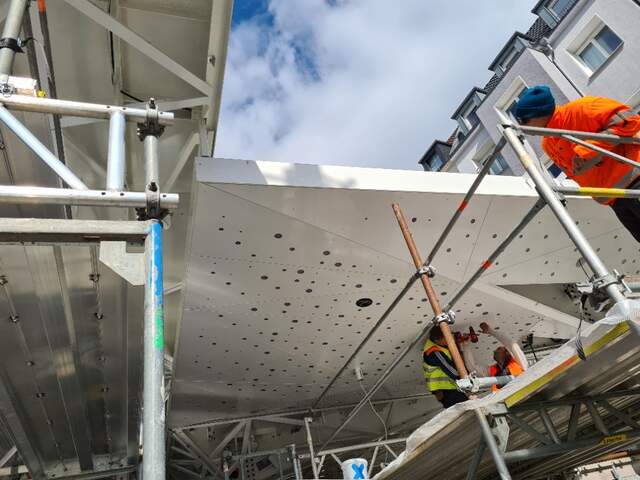 V květnu dojde v této části k instalaci dvou zelených střech a bude spuštěn zkušební provoz. Současně budeme dál pracovat na instalaci podhledů u zbylých dvou zastřešení.