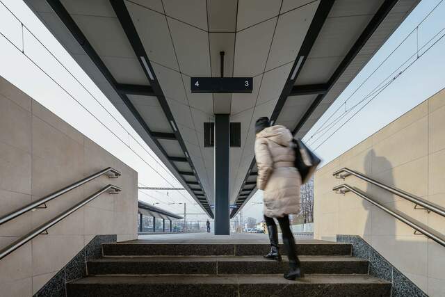 Nástupiště mají jednoduchý tvar a neutrální barevné schéma. Čistotu linií podporuje integrace osvětlení a dalších technologií. Samotné zastřešení je řešeno jako dvouplášťové. Střešní krytina je z PUR panelů, podhled tvoří kompozitními panely s hliníkovým jádrem. Součástí dodávky byl i drážní mobiliář.