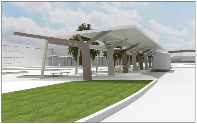 Dvojího typu je i střešní krytina. Prosklené části budou zhotoveny z tepelně zpevněného bezpečnostního lepeného skla s digitálním potiskem. Neprůhledné části střechy pak budou z PIR sendvičových panelů s plochým podhledem. Součástí je i LED osvětlení v antivandal provedení či pět elektronických informačních tabulí, mobiliář a prostory pro uložení jízdních kol.