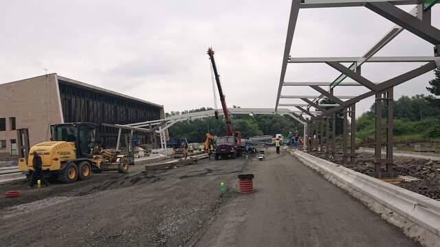 Zastřešení pěti podélných autobusových stání a k tomu propojovací krček vedoucí k výpravní budově vlakového nádraží, dodávka mobiliáře či boxů na kola. Takový je náš podíl na rozsáhlé a technicky náročně stavbě dopravního terminálu v Havířově. Autorem návrhu je studio 519. Práce začaly v červenci, hotovo bude do konce listopadu.