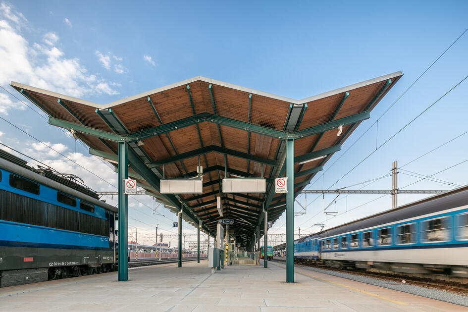 Největší akcí této etapy ale byla rekonstrukce příčné haly. „Jde o historickou stavbu, jejíž části jsou spojovány nýty. Veškeré práce, tedy otryskání, aplikaci antikorozní ochrany, obnovu zničených částí a základových patek či instalaci nové výdřevy, jsme prováděli přímo na místě – tedy bez rozebrání ocelových konstrukcí,“ přidává Pavel Holík detaily. Veškeré klempířské instalace jsou realizovány z titanzinkového plechu, došlo i k nahrazení prosklení průčelí. Spolu s tím bylo nově vystavěno na příčnou halu navazující zastřešení 4. nástupiště. Kromě toho byly vybudovány čtyři výtahové šachty osobní a tři nákladní.