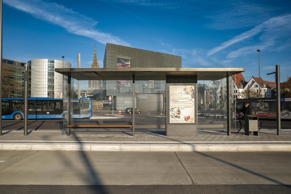 Ulmský autobusový terminál je tvořen šesti klasickými přístřešky ve dvou délkách, nástupní ostrůvek je pak osazen trojící oboustranných přístřešků. Modernizace celého terminálu byla dokončena v závěru loňského roku, nyní z něj vyjíždějí všechny městské i regionální autobusové linky.