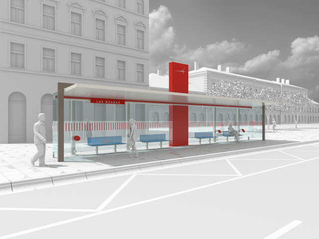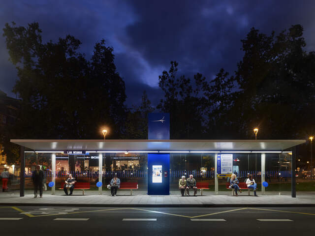 Přístřešek Qadra je ukázkou nového konceptu zastávky spojujícího orientační panel s označníkem a technické zázemí s elektroinstalací pro tramvajovou linku.