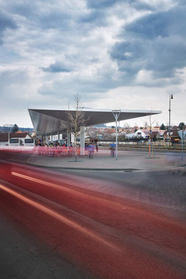 Projekt autobusového nádraží zde vznikal souběžně s rekonstrukcí výpravní budovy železniční stanice Vlašim. Zrealizovali jsme tam centrální zastřešení a přiléhající stanoviště. Zastřešení má velkorysou plochu a dvouplášťovou střechu nesenou jednou řadou sloupů.