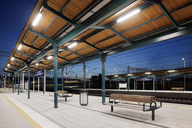 Železniční uzel v důležitém průmyslovém centru, přes který vedou dvě železniční tratě. Podíleli jsme se na modernizaci zastřešení pro několik nástupišť a dodávali drážní mobiliář. Jedno ze zastřešení jsme realizovali v historizujícím stylu.
