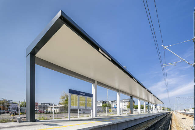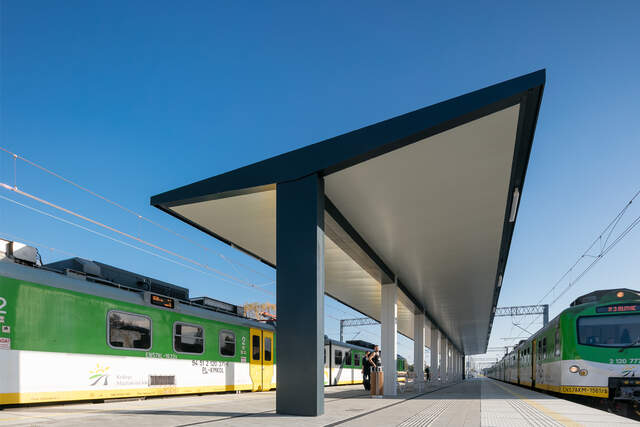 Tvarová jednoduchost nechávající vyniknout vizuálně výrazné prvky – od kompletního opláštění nosné konstrukce až po plně integrované osvětlení. Tím vyniká zastřešení elka. Jeho silueta je dána v řezu přiznaného tvaru. Střešní konstrukce je kompletně skryta nad opláštěním, ploše střechy dává vyniknout barevně odlišené lemování.