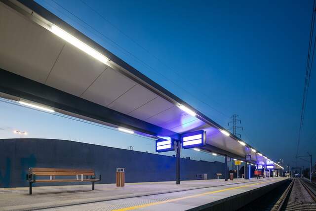 Velkorysá a čistá plocha zastřešení, které působí samonosným dojmem. K tomu nepřehlédnutelná silueta klínu vybíhající z dominantního středového nosníku. Architektonicky výrazné řešení typu wawa je umožněno umístěním střešní konstrukce nad zastřešením. Vše podtrhují sloupy kruhového průřezu.
