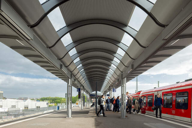 Hamburg, část Altona. Tamní stanice rychlodráhy S-Bahn se musela přesunout na nové místo. A my jsme jejich snahu zastřešili – doslova. Specifickou konstrukcí s nezaměnitelnou siluetou v podobě tří oblouků. Její celková délka je 141 metrů, plocha pak 1 600 m².