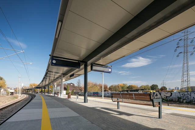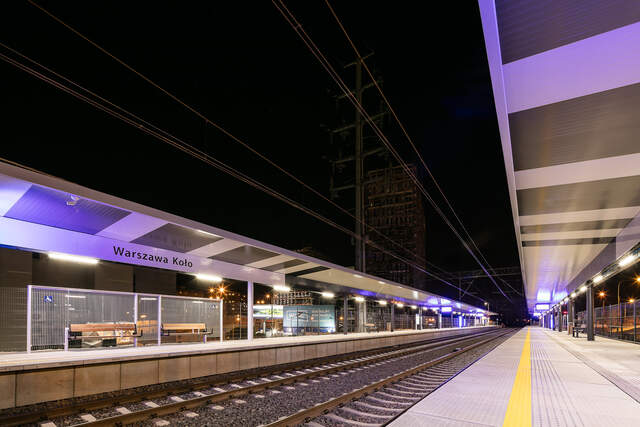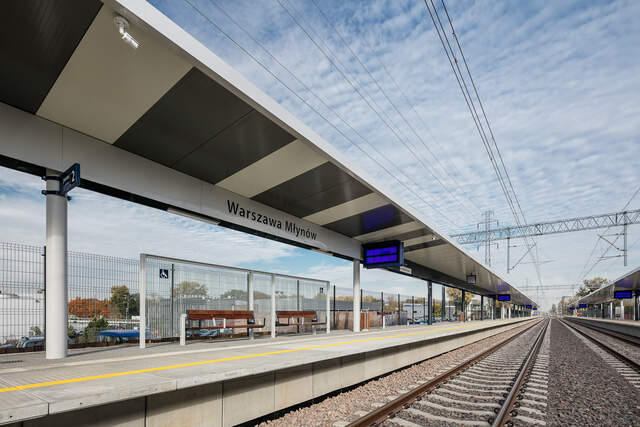 Varšavské stanice Koło, Młynów a Zachodnia. Postupně jsme tam postavili moderní zastřešení nástupišť. Jde o jednotné provedení s výraznou siluetou klínu vybíhající ze středového nosníku. Vše podtrhují sloupy kruhového průřezu.