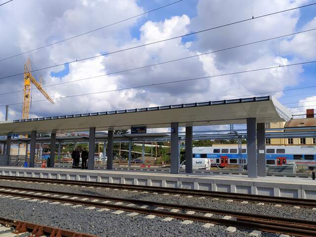 Der Auftrag umfasst insbesondere die Inselbahnsteige. Der vierte Bahnsteig ist bereits in Probebetrieb, die restlichen Arbeiten werden bis Ende November beendet sein. „Zur Zeit machen wir die abschließenden Arbeiten wie etwa die Herstellung des Blindenleit- und Orientierungssystems oder die Montage des Mobiliars,“ beschreibt den aktuellen Zustand der technische Leiter mmcité+ Jakub Holík. In einer fortgeschrittenen Phase befindet sich auch Bahnsteig Nr. 3, wo bereits die Stahlkonstruktion und der Dachmantel fertig sind. Der Bau des nächsten Bahnsteigs beginnt noch in diesem Monat. Die Renovierung des letzten Bahnsteigs ist für nächstes Jahr geplant, gleichzeitig mit der Überdachung des Unterführungsausgangs neben dem Hauptgebäude.