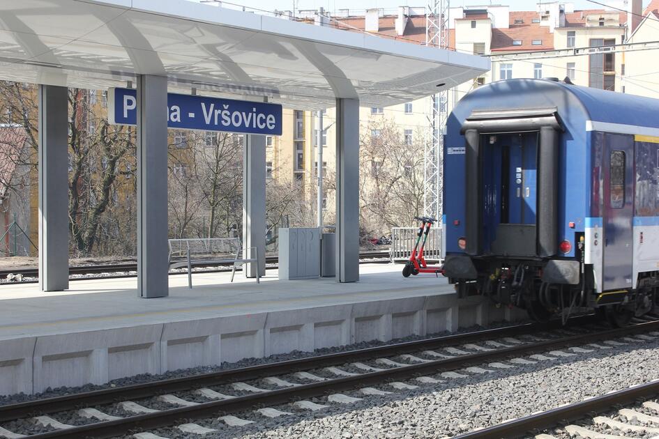 In Vršovice sind die Bahnsteige 3 und 4 praktisch fertig. Bei Letzterem ist die Stahlkonstruktion fertig und die Vorbereitungsarbeiten für die Verkleidung sind vor Kurzem gestartet. Am Bahnsteig 1 werden wir uns im Mai ans Werk machen. Geplant ist ebenfalls die Überdachung des Ausgangs aus der Unterführung neben dem Hauptgebäude.