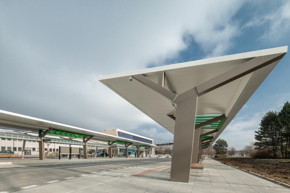 Im Kreis der Personen und Subjekte, die hinter dem Projekt stehen, befindet sich auch die Gesellschaft mmcité+, die für die Lieferung der vollständigen Überdachung der Bussteige und der Verbindungsbrücke sowie des Mobiliars und der Fahrradboxen zuständig ist. Aus Bílovice, dem Sitz der Firma mmcité+, wurde nicht nur das hochwertige Design, sondern auch das entsprechende Handwerk geliefert.