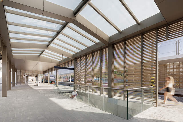 Ein großer, materiell markanter Komplex mit einem Bahnhofsgebäude. Seit den 1950er Jahren ist es die Dominante des denkmalgeschützten Bahnhofs von Pardubice. Bei der Gestaltung der Überdachung der Bahnsteige war der Respekt vor der umgebenden Architektur von Anfang an eine der wichtigsten Anforderungen. Das Team von Egoé hat dies umgesetzt, indem es die stählerne Tragkonstruktion in der Dachverkleidung versteckte und klare Formen oder Glas verwendete. Es gab auch mehrere sensible Anspielungen auf den ursprünglichen Entwurf.
