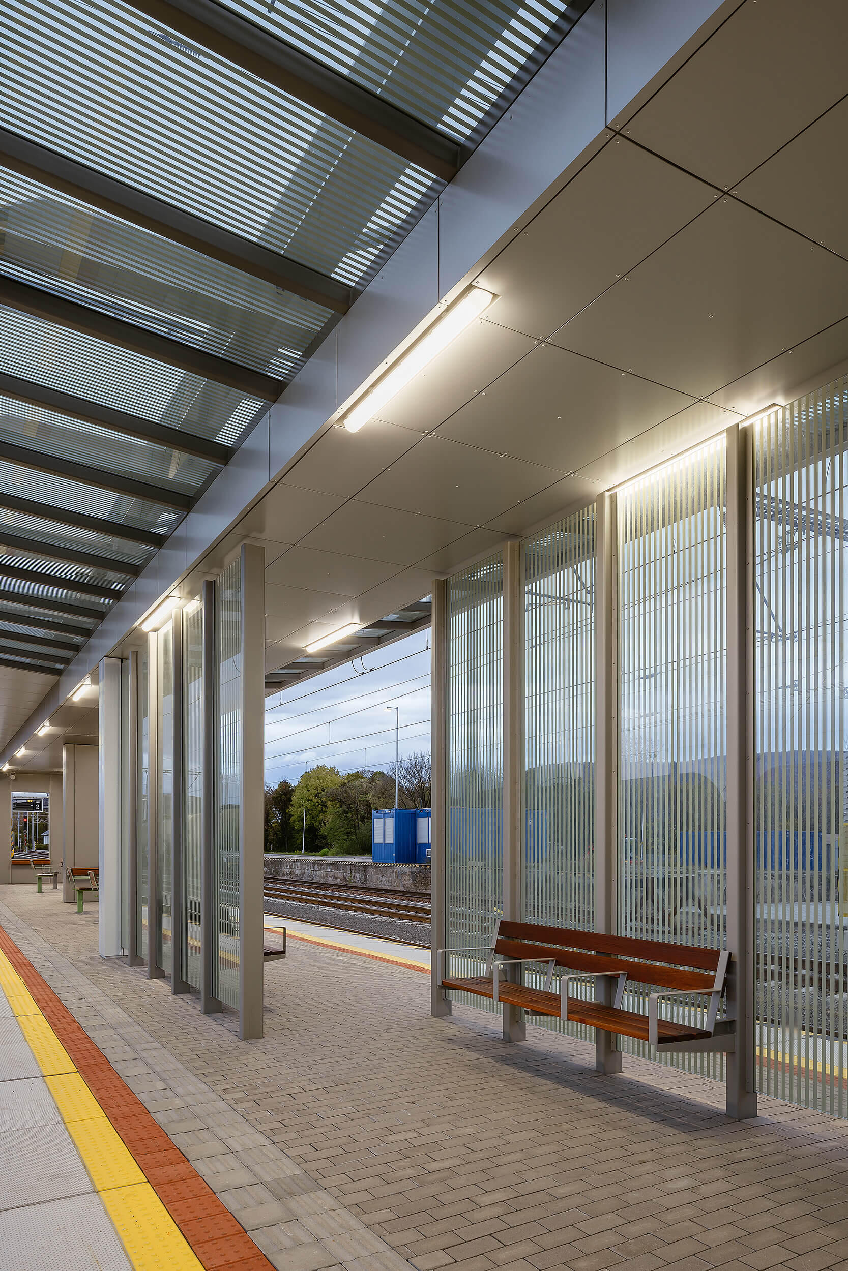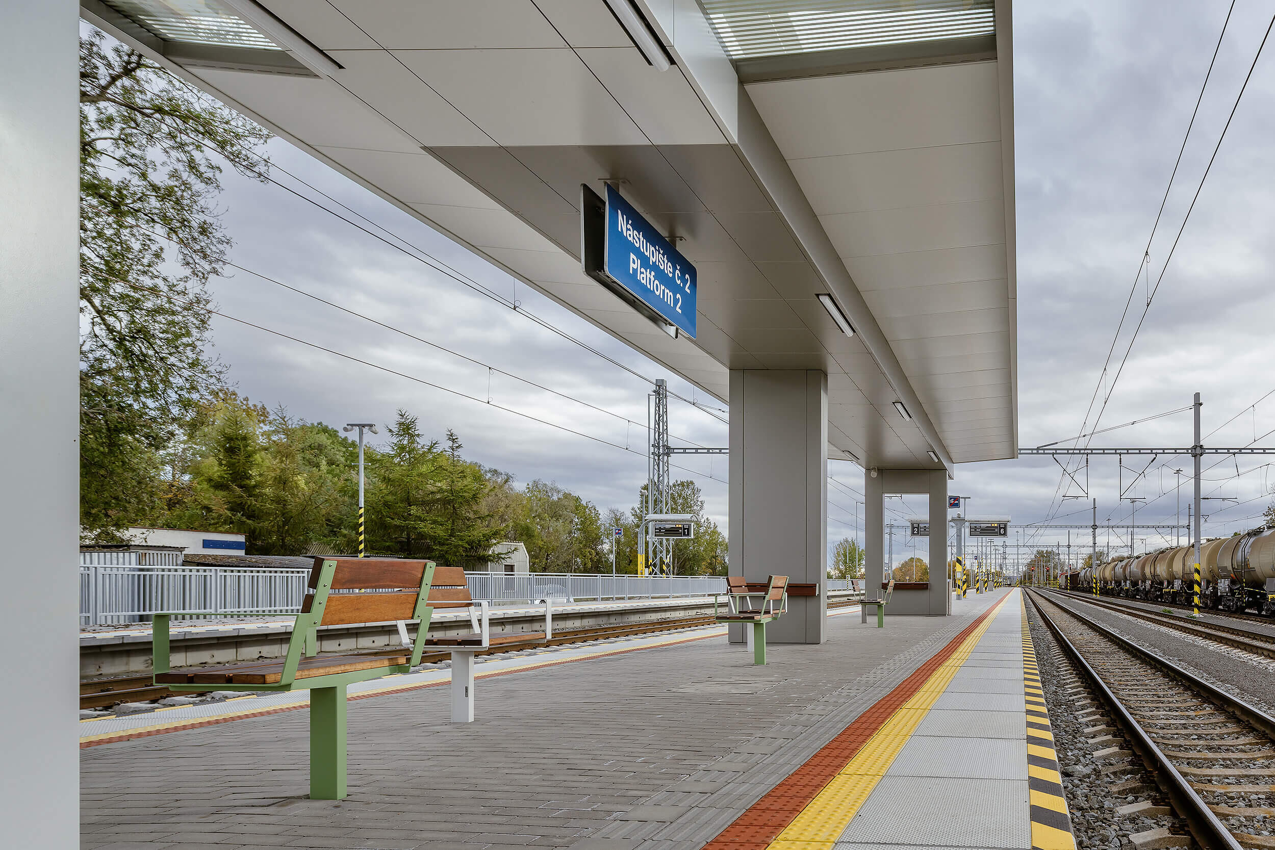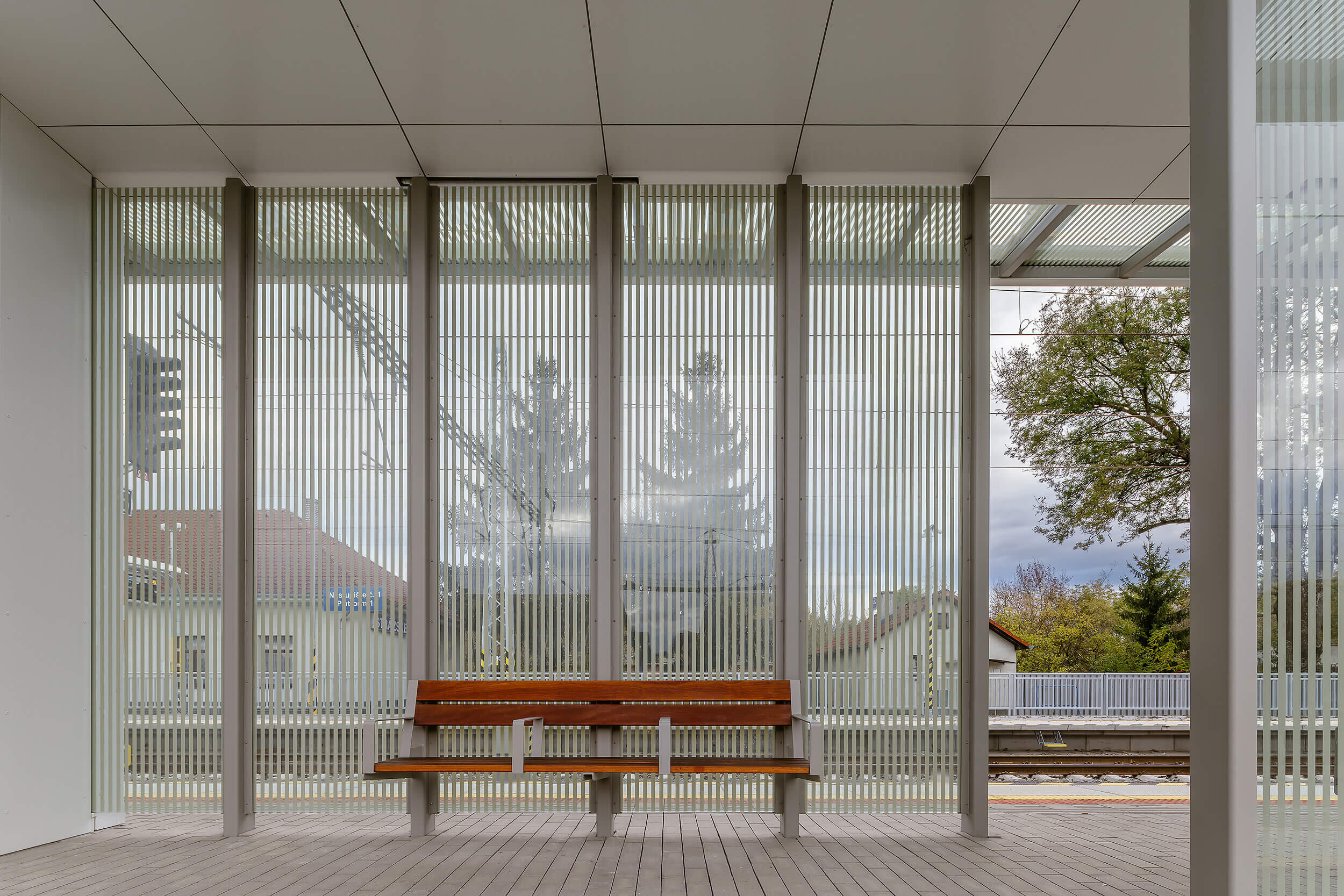 Die Bahnstation Strážske liegt an der Strecke zwischen Michalovce und Humenné und dient vor allem dem täglichen Transport der lokalen Fahrgäste. Die Überdachung des Inselbahnsteigs entspricht der einfachen Betriebsstruktur der Station und ist direkt auf Gleisniveau ohne Unterführungen und Aufzüge zugänglich. Die Doppelhautkonstruktion des Daches mit Glasoberlichtern und Sichtschutzwänden bietet Schutz und Licht. Dabei sind die technischen Elemente und das Mobiliar qualitativ mit den anderen Bahnstationen auf der Strecke vergleichbar.