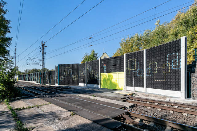 Schallschutzmaßnahmen an der Eisenbahnstrecke Kralupy nad Vltavou – Roudnice nad Labem. Bestandteil des Baus ist die Installation eines zweiflügeligen Schallschutztors 4x4 m, das ebenfalls mit einem Schallabsorber auf Gummibasis versehen ist.