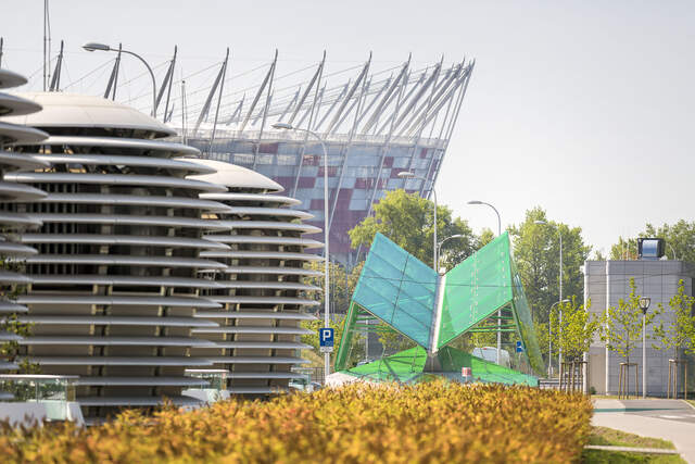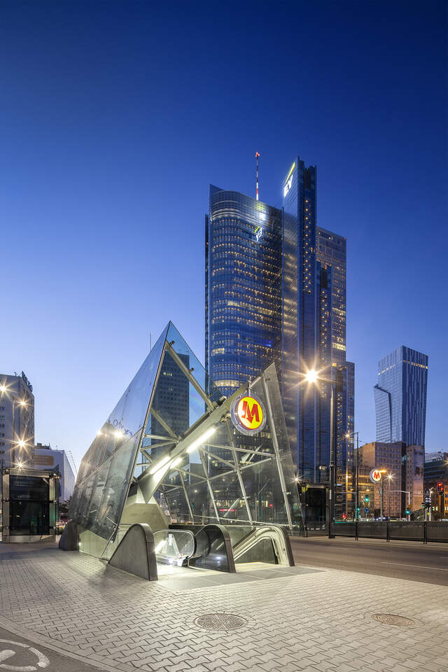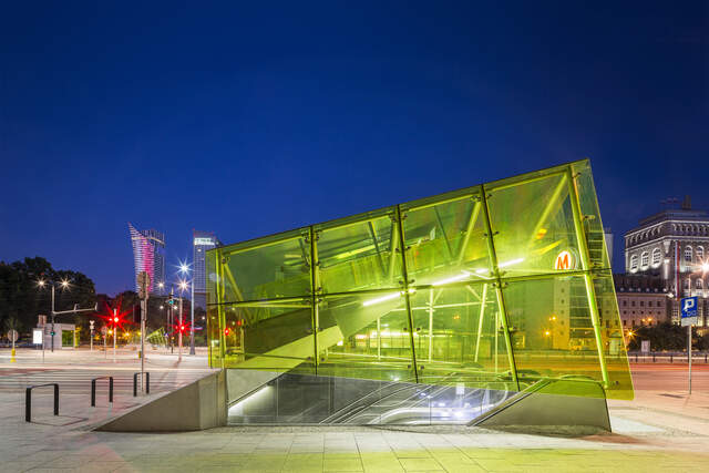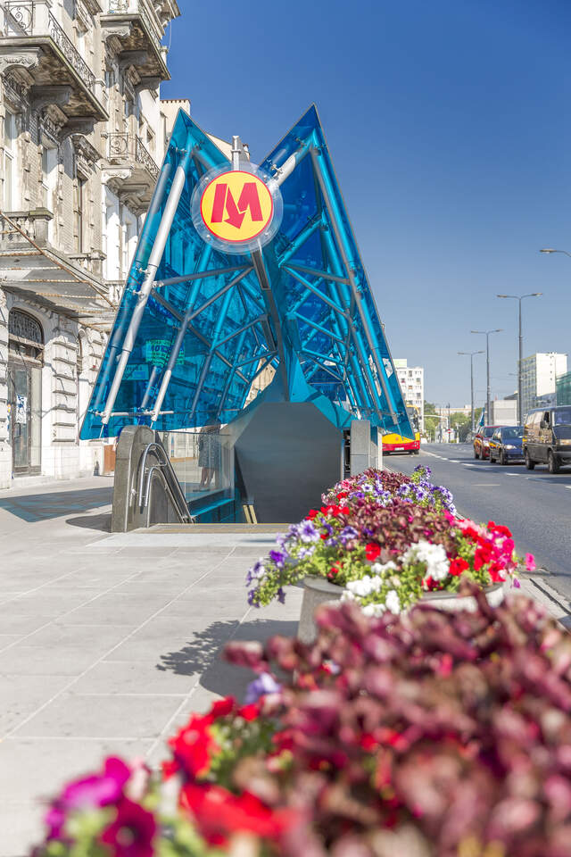 In der polnischen Hauptstadt wurden sieben neue Metrostationen gebaut, zu denen Überdachungen für 47 Ausgänge zu bauen waren. Aufgrund der unterschiedlichen Anforderungen der einzelnen Standorte lassen sich bei der Umsetzung 12 Arten von Stahlkonstruktionen unterscheiden die sich in Größe und Form unterscheiden.
