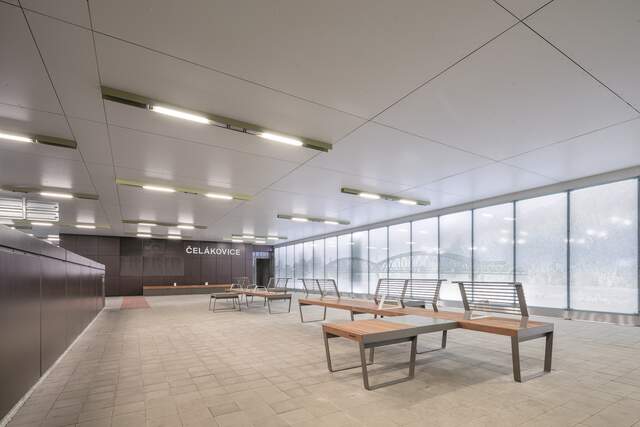 Das Bahnhof in Čelákovice liegt an der frequentierten Eisenbahnstrecke zwischen Prag und Lysá nad Labem und gehört zu den 50 meist ausgelasteten Bahnhöfen in Tschechien. Jeden Tag werden hier sechs tausend Passagiere abgefertigt. Seine Sanierung war auch aus diesem Grunde von hoher Bedeutung. Das Hauptgebäude wurde renoviert und es ist ein überdachter Inselbahnsteig mit neuen Unterführungen entstanden. Für den Entwurf sowie die Auswahl der Materialien war Egoé studie zuständig, die Montagearbeiten wurden dann von der Firma Egoé plus durchgeführt.