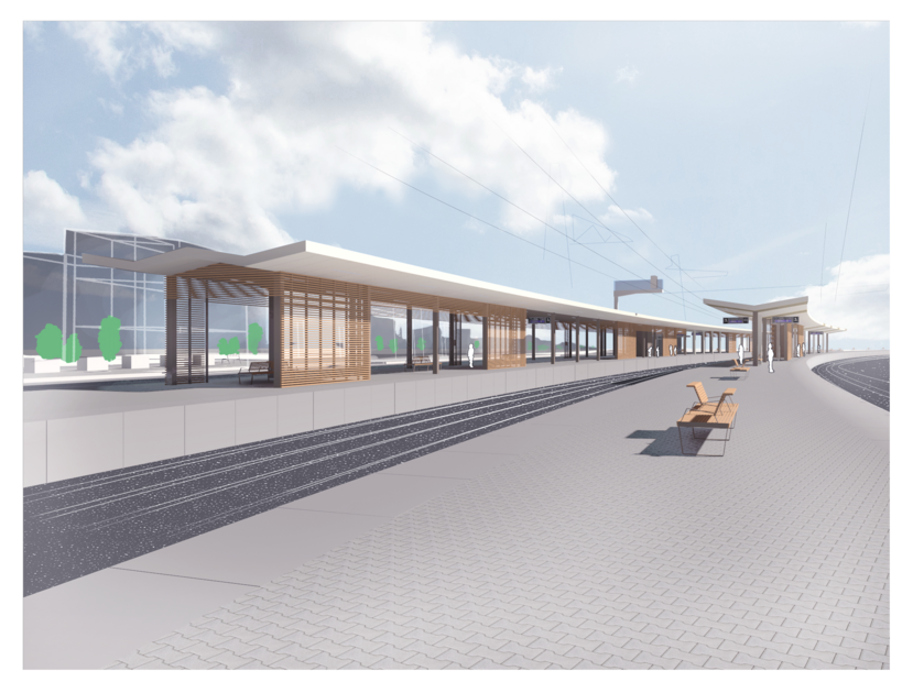 Pierwotne budynki stacji kolejowej zostały wyburzone, zmniejszona została także liczba torów. Sama budowa rozpoczęła się od prac przygotowawczych pod koniec 2021 roku, a my dołączyliśmy do niej w tym roku. Obecnie realizujemy głównie dwa zadaszenia. Pierwsze z nich ma układ portalowy i dach w kształcie litery W. Nawiązuje do budynku terminalu, na końcu jest obustronny, a jedna z krawędzi pokrywa przestrzeń do wsiadania do autobusu.