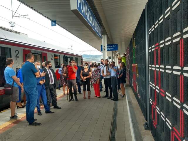 Pięć paneli noba, pięć różnych motywów. Na pierwszym peronie stacji Považská Bystrica nieusuwalny ślad pozostawiły dzieci z Artystycznej Szkoły Podstawowej Imre Weinera Kráľa. Ekran dźwiękochłonny został zmieniony w płótno malarskie w poniedziałek, a dzisiaj stał się kulisami uroczystego zakończenia modernizacji linii między miejscowościami Púchov a Považská Tepla.