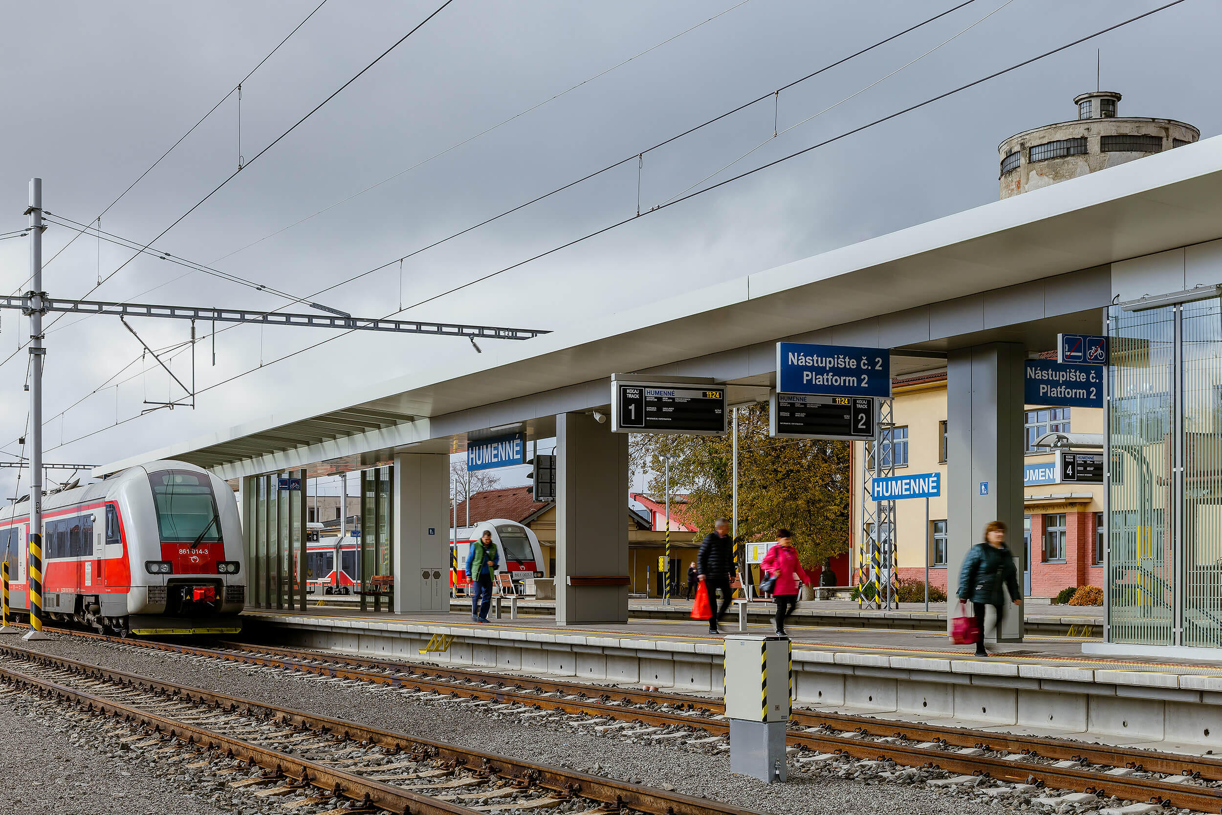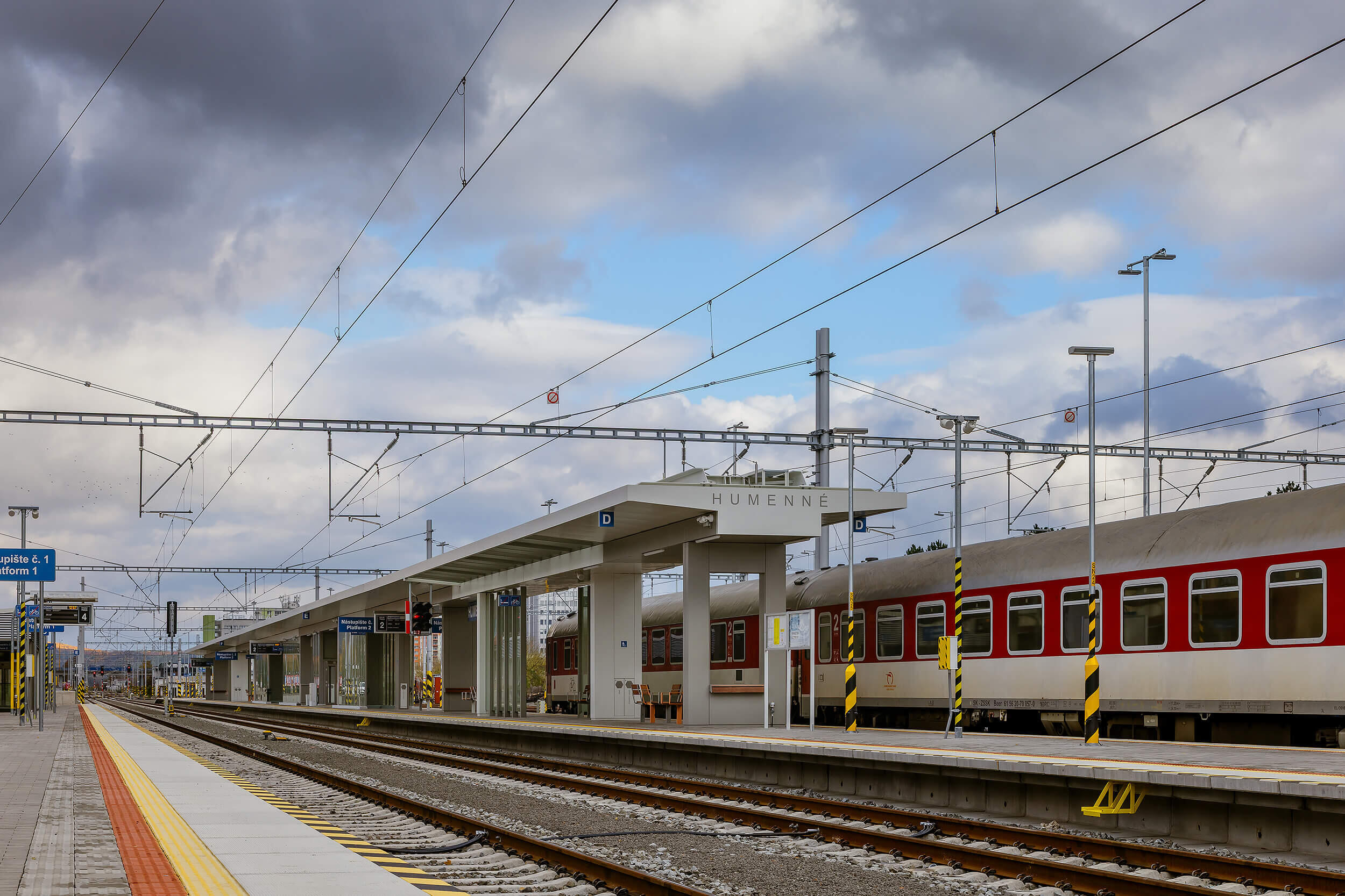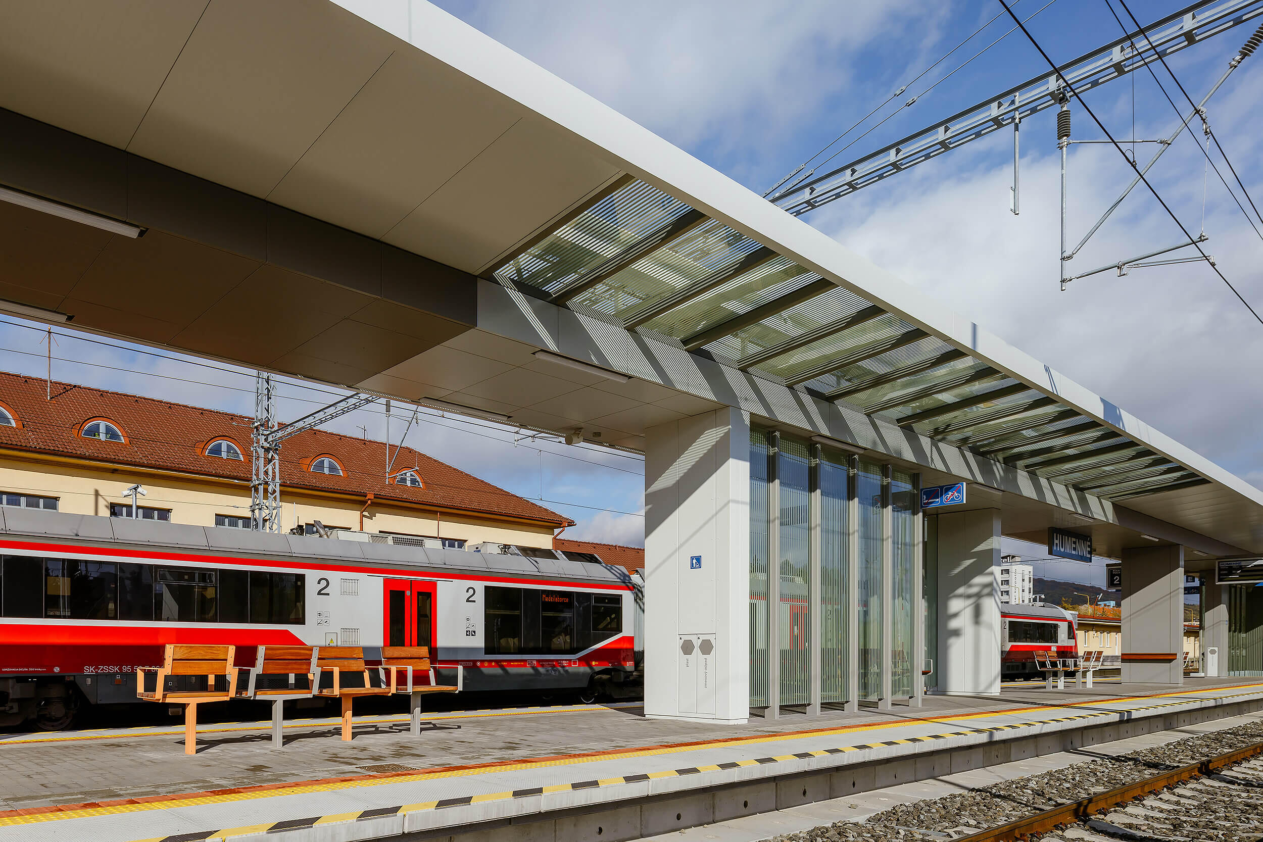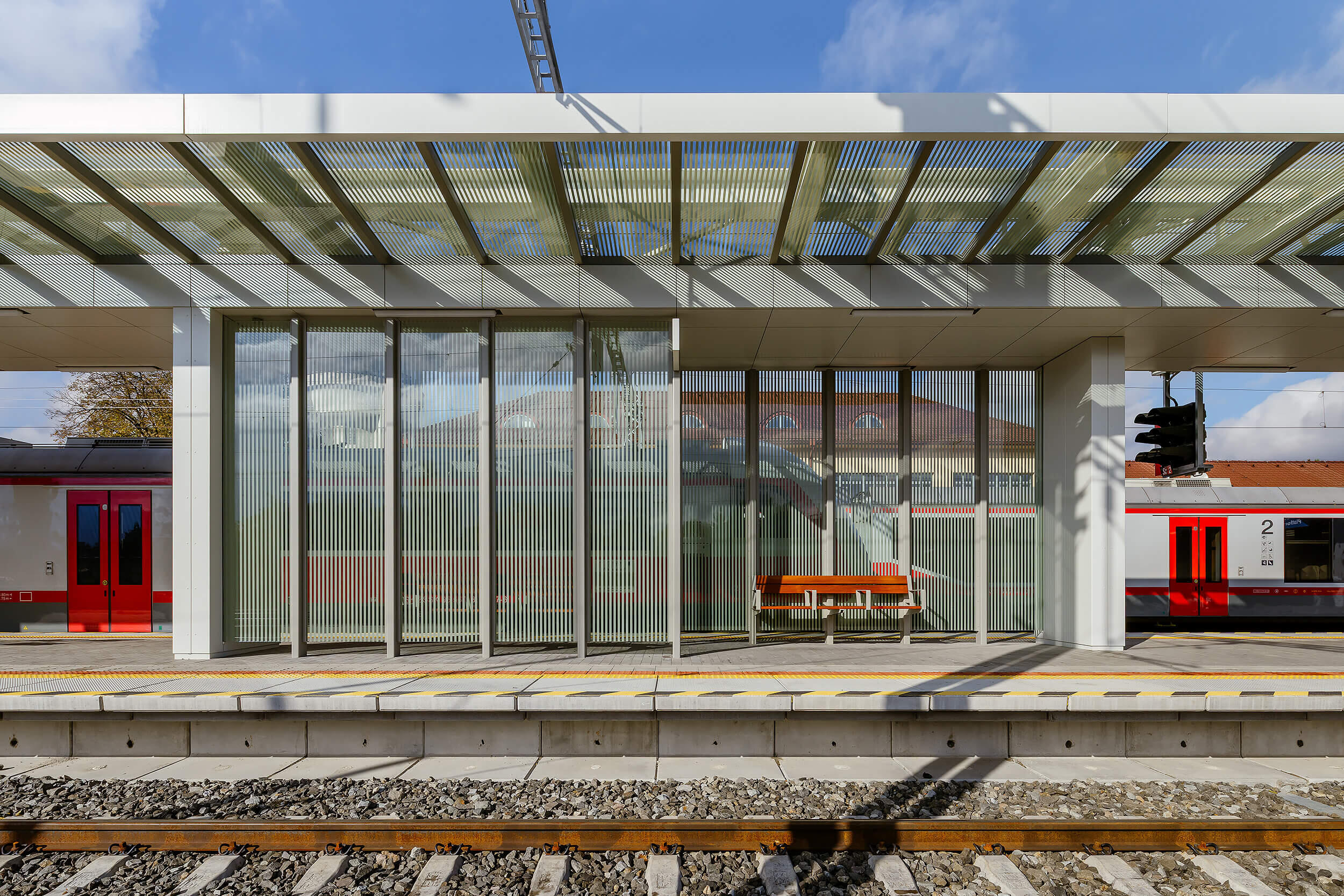 Na stacji stopniowo powstają trzy nowe zadaszenia peronów wyspowych. Dach jest jednopowłokowy, składa się z panelu warstwowego, który pełni funkcję pokrycia dachowego i sufitu podwieszanego. Sama konstrukcja jest podniesiona ponad poziom panelu. Wszystkie słupy nośne składają się z par profili.