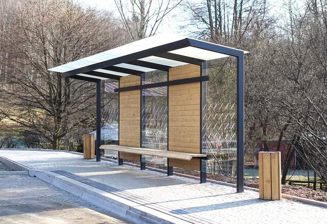 Wiata traxo w maksymalnym stopniu wykorzystuje możliwości materiałów, takich jak konstrukcja stalowa lub szkło, które jest częściowo wystające. Wysunięte do przodu szkło przyczynia się do wizualnego odciążenia całego obiektu.